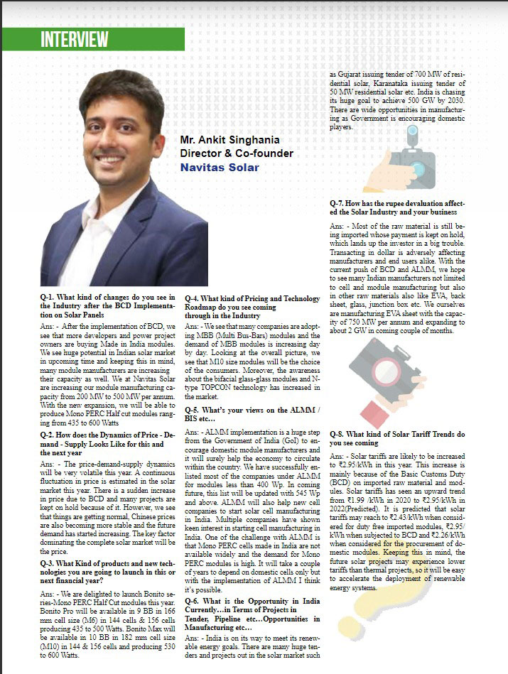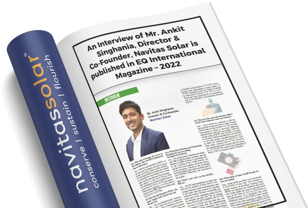 An Interview of Mr. Ankit Singhania, Director & Co-Founder, Navitas Solar is published in EQ International Magazine – 2022
