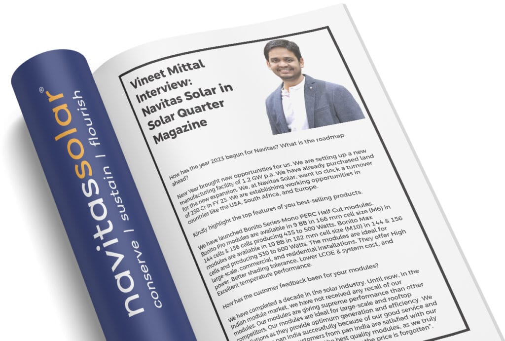 New Year brought new opportunities for us. We are setting up a new manufacturing facility of 1.2 GW p.a. We have already purchased land for the new expansion. We, at Navitas Solar, want to clock a turnover of 250 Cr in FY 23. We are establishing working opportunities in countries like the USA, South Africa, and Europe.