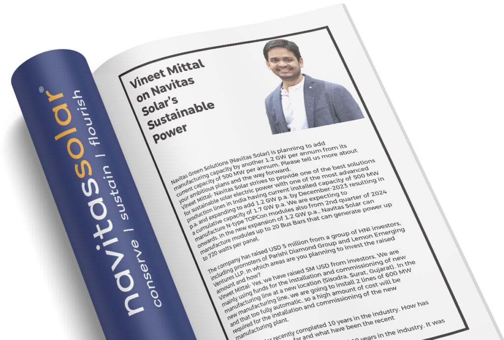 Vineet Mittal- Navitas Solar strives to provide one of the best solutions for sustainable solar electric power with one of the most advanced production lines in India having current installed capacity of 500 MW p.a. and expanding to add 1.2 GW p.a. by December-2023 resulting in a cumulative capacity of 1.7 GW p.a. We are expecting to manufacture N-type TOPCon modules also from 2nd quarter of 2024 onwards. In the new expansion of 1.2 GW p.a., Navitas Solar can manufacture modules up to 20 Bus Bars that can generate power up to 720 watts per panel.