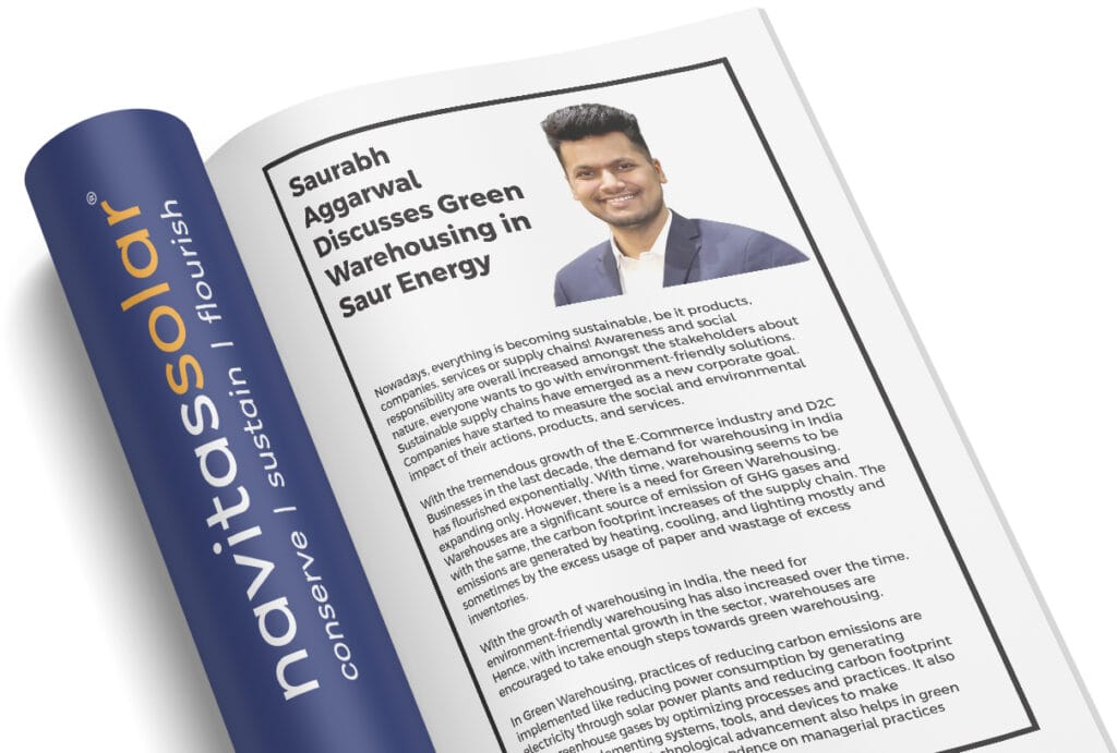Green Warehousing can help logisticians in reducing energy consumption, reduce loss of resources and reduce deadstock. Therefore, green warehousing can be a necessity in recent times. At, Navitas Solar, a leading module manufacturing company, by providing Solar EPC services, we help consumers to install solar at their premises. We, ourselves have installed a 273-kW solar power plant at our factory rooftop.