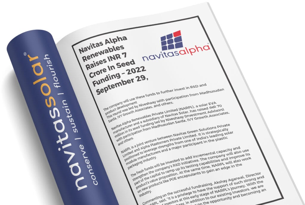 Navitas Alpha Renewables Private Limited (NARPL), a solar EVA manufacturer and a subsidiary of Navitas Solar, has raised INR 70 million in its seed funding led by Niveshaay (Investment Advisors) with participation from Madhusudan Sarda, IVY Growth Associates, and others.