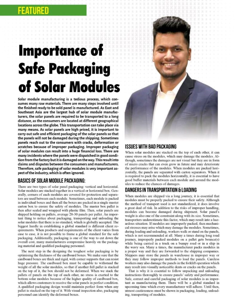 Solar module manufacturing is a tedious process, which consumes many raw materials. There are many steps involved until the finished ready to be sold panel is manufactured. As East and Southeast Asia are the largest hub of solar module manufacturers, the solar panels are required to be transported to a long distance, as the consumers are located at different geographical locations across the globe. This transportation can take place via many means. As solar panels are high priced, it is important to carry out safe and efficient packaging of the solar panels so that the panels will not be damaged during the shipping. Sometimes panels reach out to the consumers with cracks, deformation or scratches because of improper packaging. Improper packaging of solar modules can result into a huge financial loss. There are many incidents where the panels were dispatched in good condition from the factory but it is damaged on the way. This result into claims and disputes between the consumers and manufacturers. Therefore, safe packaging of solar modules is very important aspect of the industry, which is often ignored.